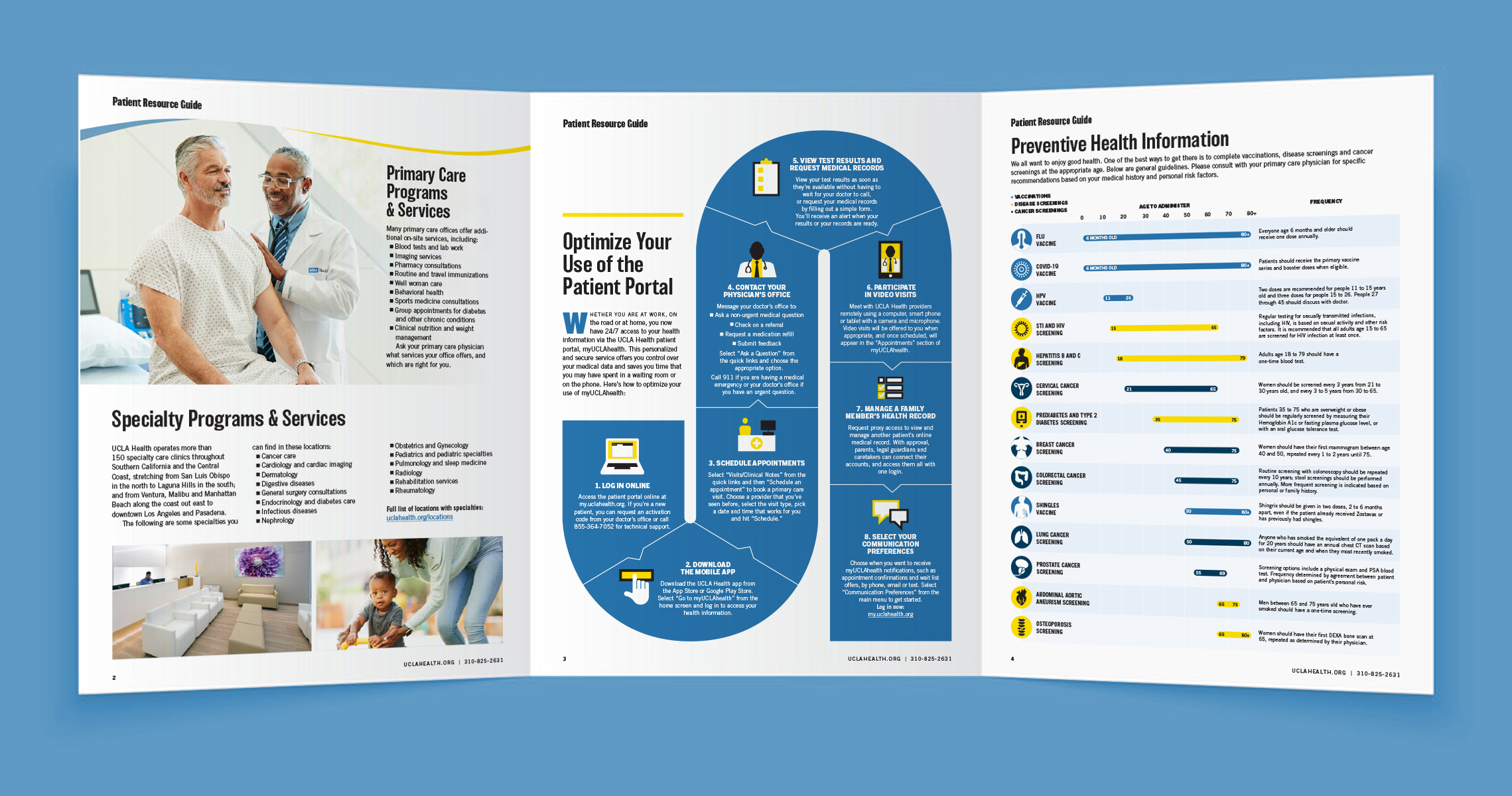 In addition to hands-on design and illustration, I played a leadership role in shaping the visual branding, including custom publications like The Checkup, The Newborn Manual, Dementia Guidebook, and New Patient Guide, while guiding projects from concept through final delivery. Whether launching a multi-channel public health initiative or developing long-form patient manuals, the result was design that supported institutional trust, and met the high standards of one of the top healthcare systems in the country.